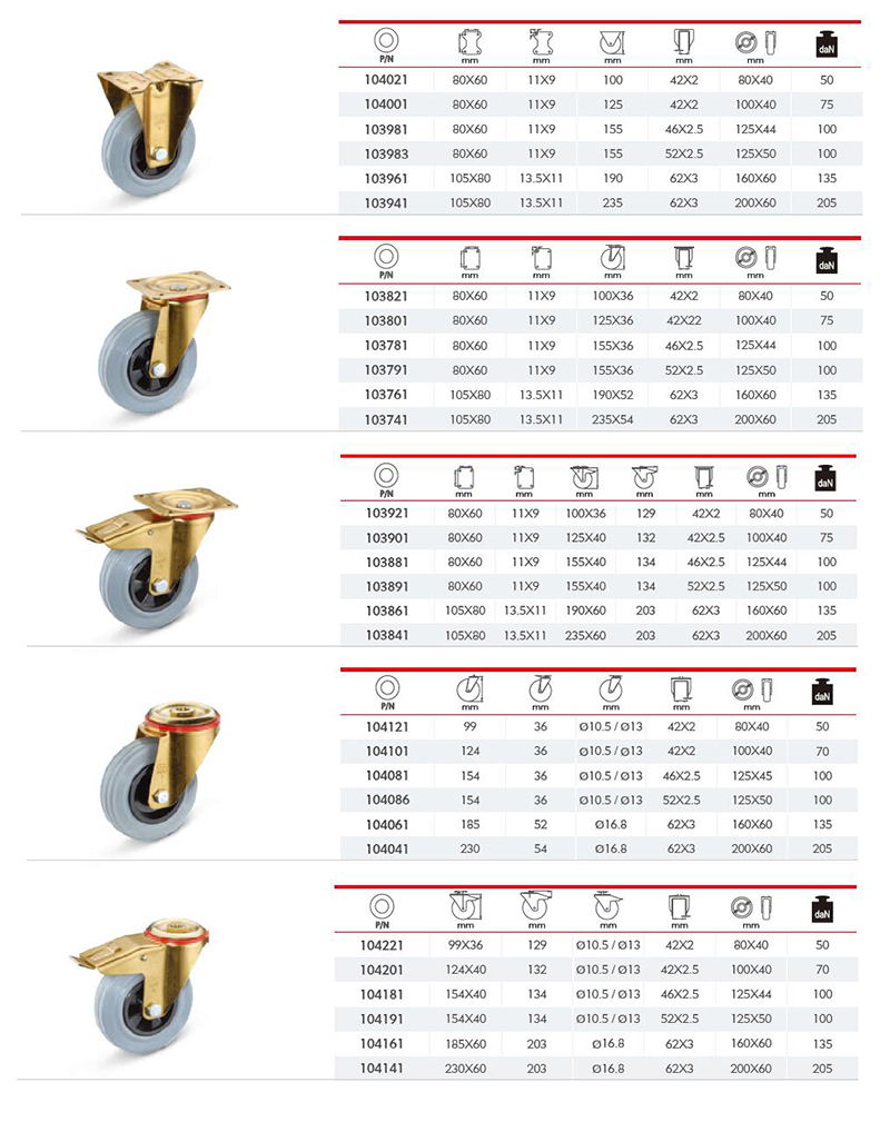 Колеса и ролики из серой стандартной резины на полипропиленовом ободе - 14 серия